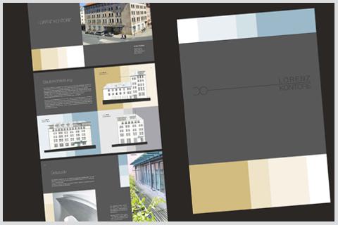 Das Raster der Broschüre lehnt sich gestalterisch an die äußerliche Plattenstruktur des Gebäudes an.